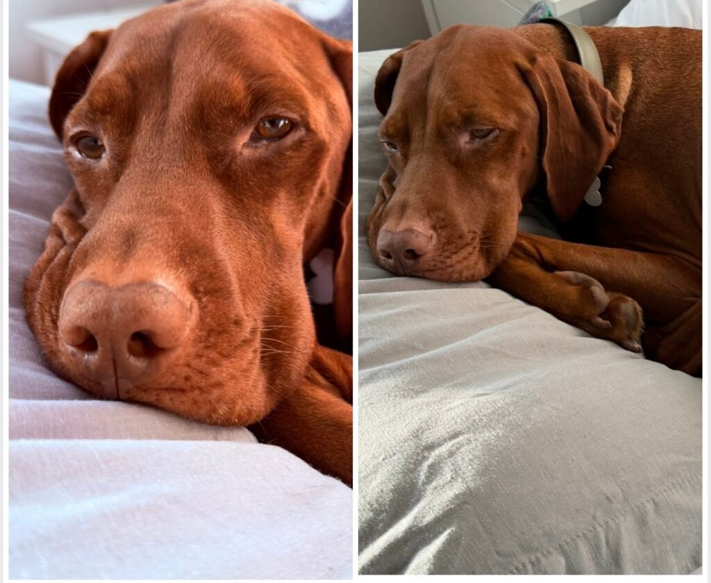 He also hates getting up early – which is hilarious considering he is, in fact, a dog. You’d think dawn walks would be his dream. Absolutely not. If you try to wake him before he feels emotionally ready, he acts like a teenager who’s been asked to go to school on a Saturday. Heavy sighs, eyes squeezed shut, dramatic flopping back onto the pillow. Mornings are not Hunter-friendly territory.